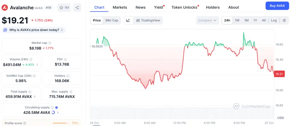Avalanche (AVAX) is getting more attention in the market again as it stabilized at a significant support zone between 18 and 20 dollars, which has historically led to many rallies. The token’s ability to stay stable throughout recent price swings shows that purchasers are protecting the base channel and discreetly building up their holdings again.