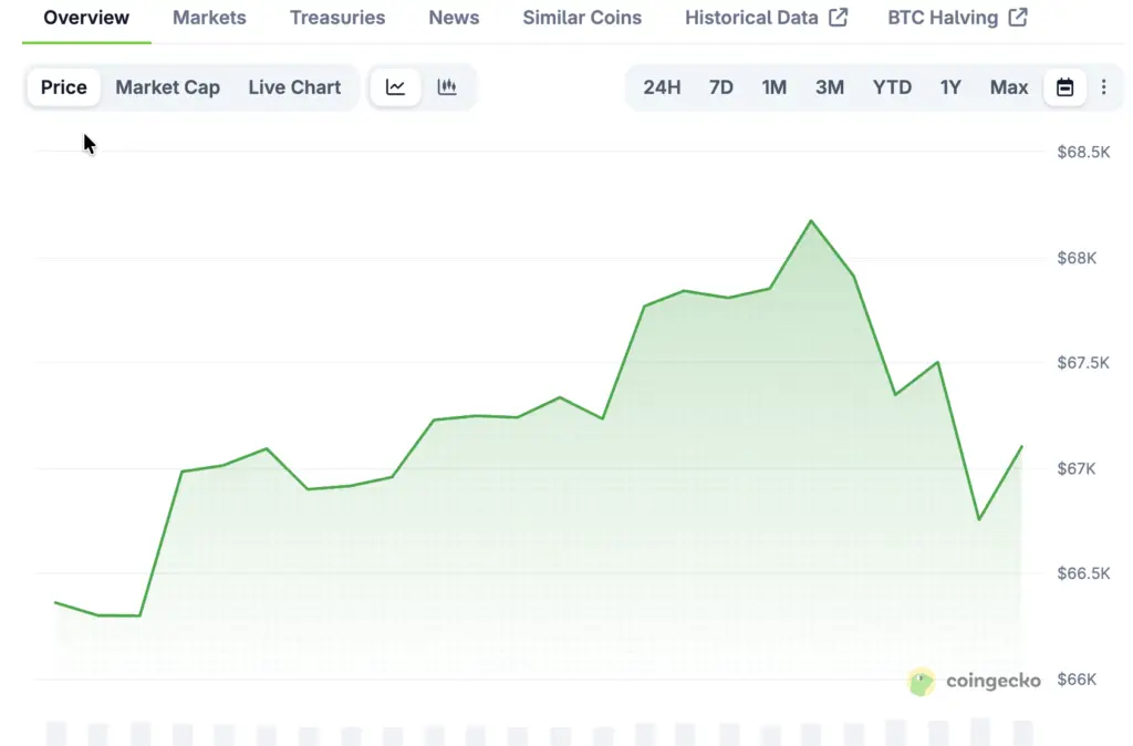 Recent trading patterns show that crypto markets often don’t like small upward movements. Traders are still being careful because of the uncertainty in the economy and the changing liquidity conditions. After a short rally, people in the market saw Bitcoin stabilize below the $67,000 level.