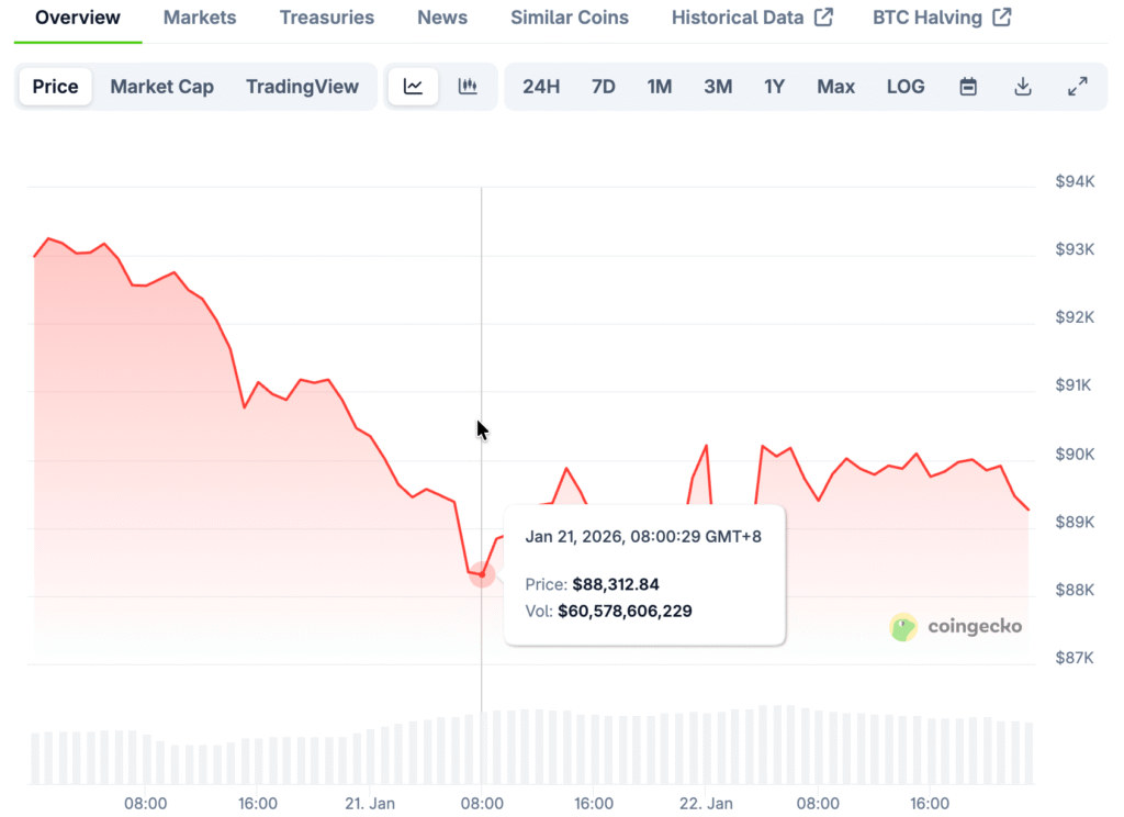 Bitcoin got close to $90,000 for a short time before falling back to around $88,000 as traders took a second look at the market’s momentum and liquidity. Selling pressure came back quickly as the larger crypto markets got weaker and leveraged positions started to unwind. The reversal showed that confidence was still shaky after recent market swings and buyers not following through as promised.