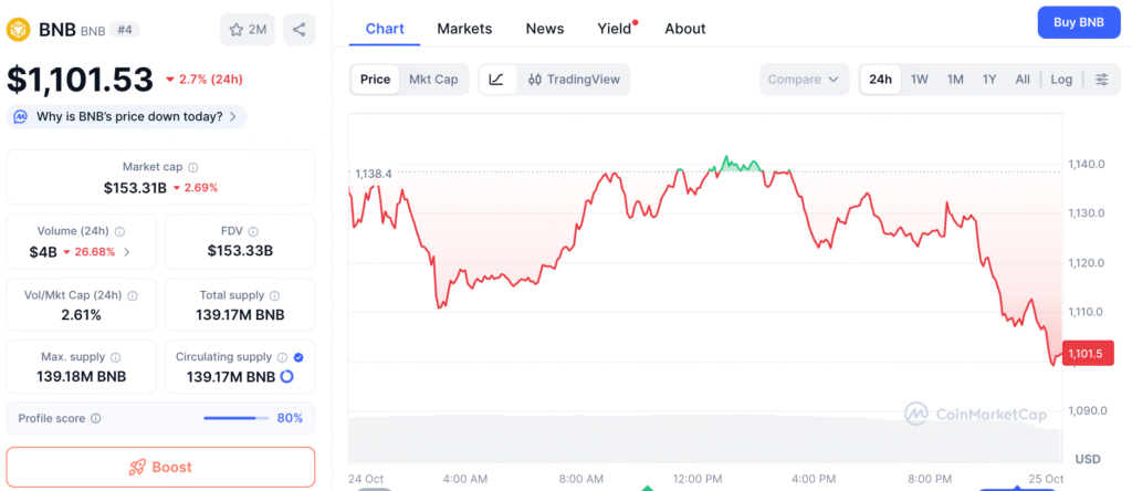 At the time of the announcement, BNB was trading close to USD 1,138, suggesting that it was strong despite concerns in the larger economy. As the integration starts to show up in on-chain data and liquidity movements across key exchanges, traders are keeping a careful eye on it to see if the trend is confirmed.