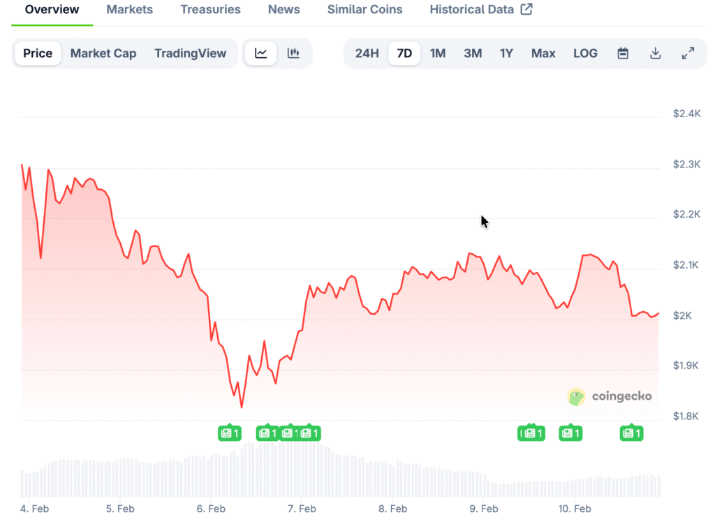 Ethereum Slides Near $2K as $7,500 Forecast Emerges
