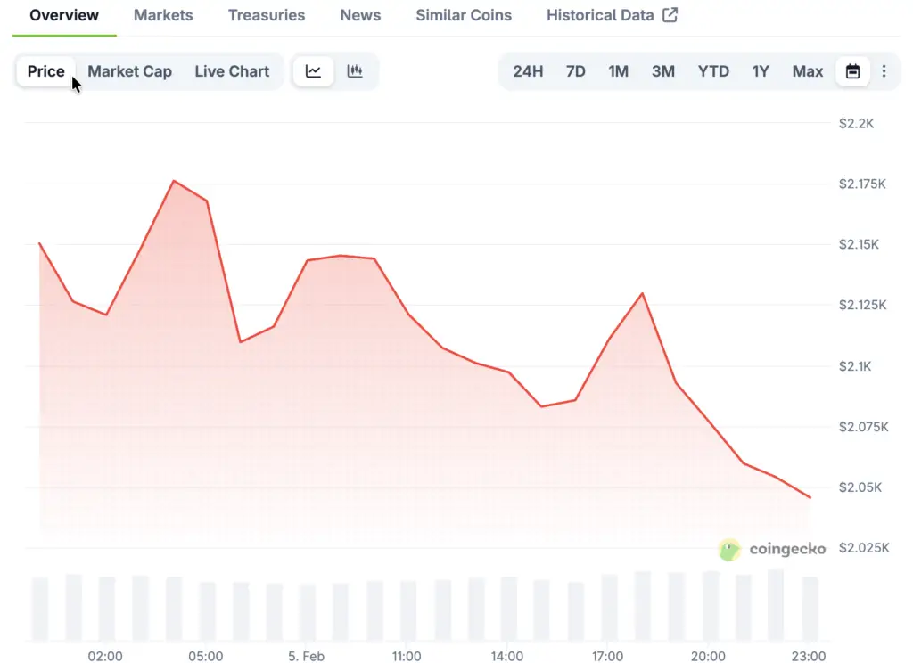 Ether has declined sharply alongside the broader cryptocurrency market. This year, the token has lost more than one-third of its value. Digital assets have been heavily impacted by market volatility.