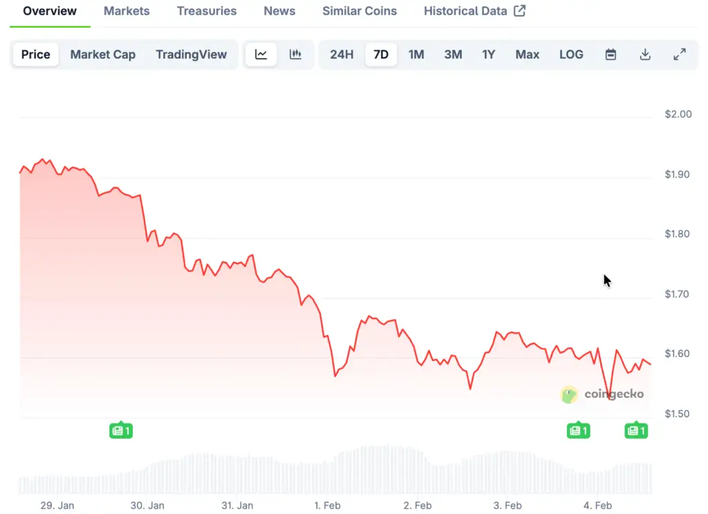 XRP needs to stay in the $1.60 to $1.62 range to avoid losing more money. This area recently stopped the selloff and is still an important support level. A breakdown would let prices go down to the $1.50 level.