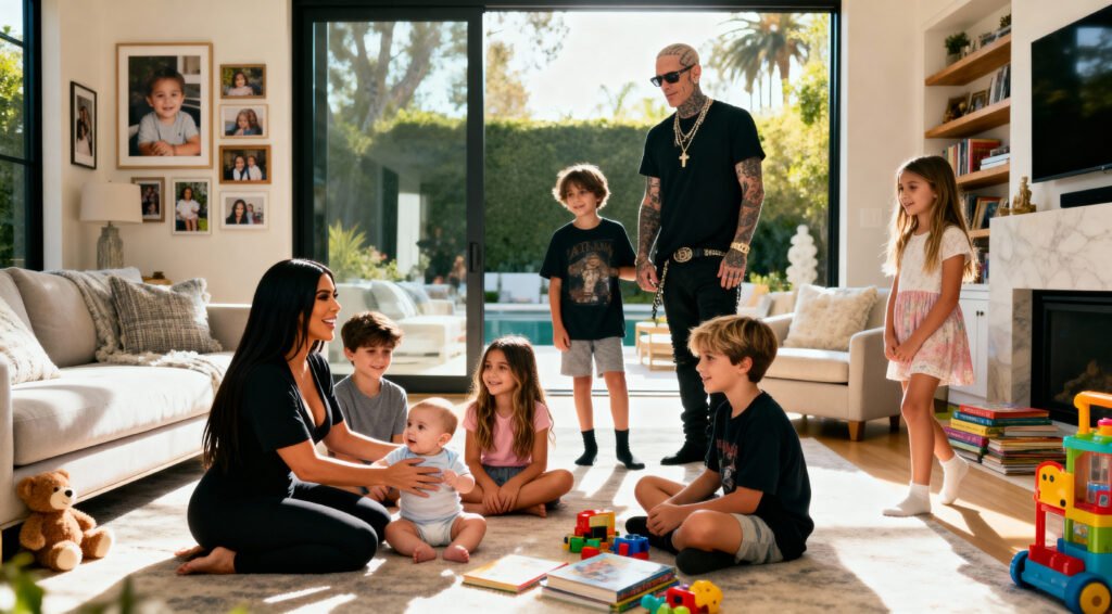 Since the birth of baby Rocky, Kourtney’s household has become a lively blend of children, routines, and music. She continues to nurture her older kids while also embracing her role as a stepmother to Travis Barker’s children. Her social media often features family dinners, vacations, and creative moments shared between both families.