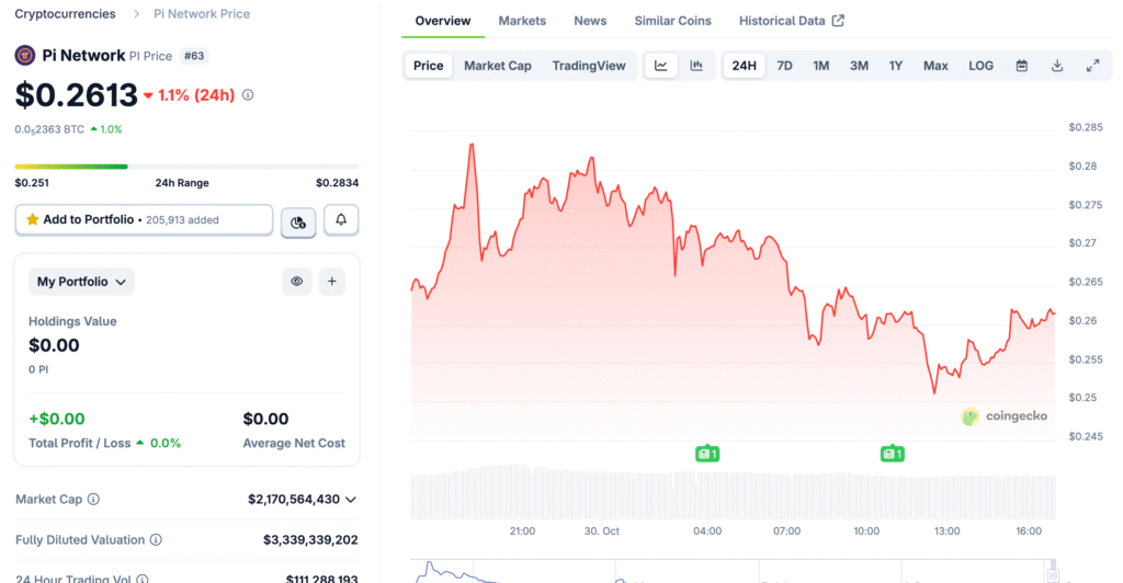 Market Performance: PI Token Faces Renewed Pressure