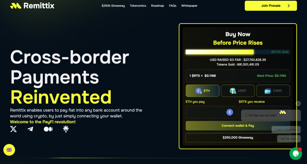 Remittix’s standout features include global reach, secure smart contracts, and deflationary tokenomics. Incentive programs, including a $250,000 giveaway, are boosting early engagement. Its real-time wallet provides seamless fiat conversions and user-friendly transfers. These elements combine to establish strong network effects and long-term value.