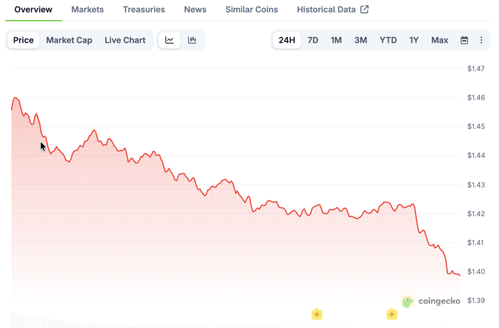 Prices fell quickly and came back up to around $1.40 in the middle of the week. XRP briefly dropped below that level, but then it rose a little bit after that. Overall, weekly performance is still down more than 11%.