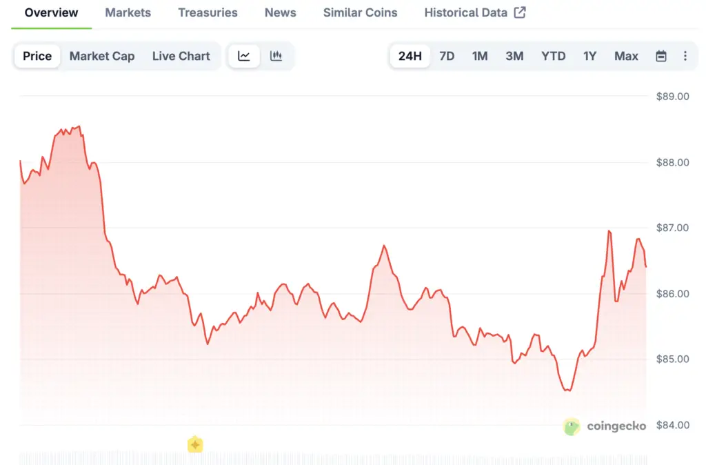 On March 11, Solana USD traded for about $85, which was about 1.27% more than the day before. The cryptocurrency went up a little after a long time of falling prices in the rest of the market. As Solana tried to stabilize, investors watched the rebound closely.