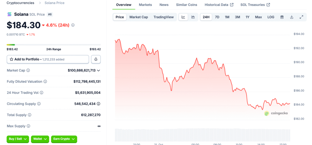 After the October 10 shock, SOL rebounded off support near US$175. It currently trades above the 200‑day simple moving average around US$173. Bulls look for a reclaim of the 50‑day near the US$193 region. Constructive closes would confirm improving structure and breadth in flows.