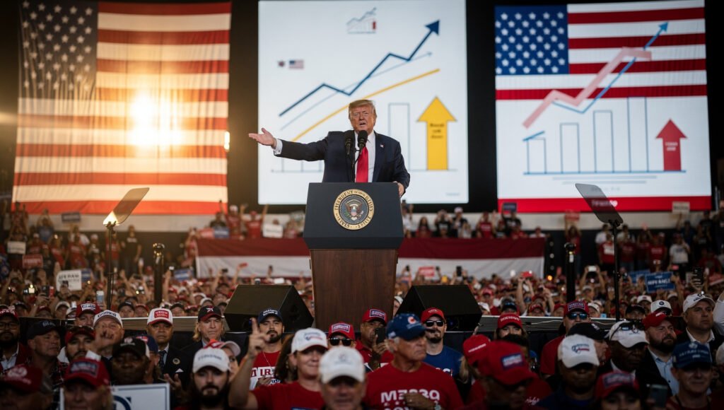 Donald Trump, the President of the United States, gave his third speech about the economy this month in North Carolina. He talked about how well his government has been doing with money. He told the throng that America’s economy was stronger and more solid than before.