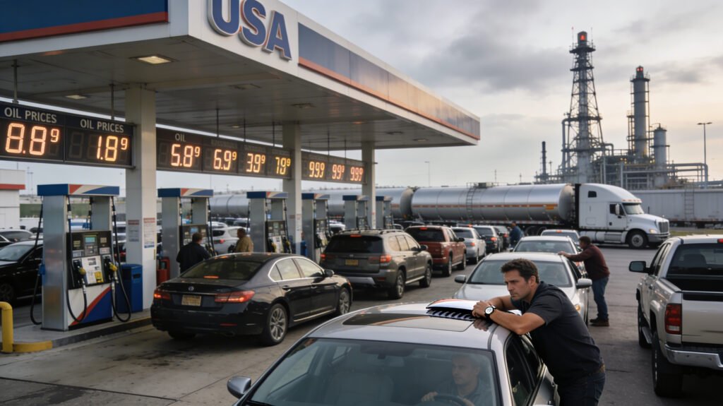 The war in Iran caused gas prices to go up a lot all over the United States. The average price of gas rose to almost $4 per gallon, which made things even harder for families who were already having trouble with rising living costs.