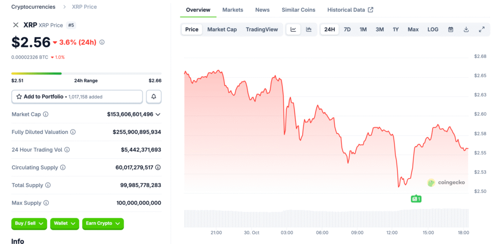 Despite the announcement of Evernorth’s plans, XRP’s market reaction has remained muted, reflecting mixed investor sentiment. Many traders remain cautious due to regulatory uncertainty in the United States, where digital asset policy remains fragmented. The broader crypto market’s mild correction has also weighed on XRP, causing it to underperform relative to peers like Bitcoin and Ethereum. Until clear signals emerge from both the SEC and institutional buyers, analysts expect price volatility to persist through early November.